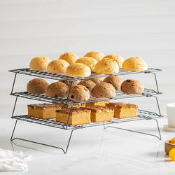 Drielaags Antiaanbaklaag Roestvrijstalen Koelrek Zwart Koelnet Voor Cake Brood Bakken Meelzeefmat Bakgereedschap